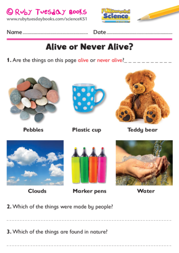 Alive not alive ks1 worksheet. Some of the worksheets displayed are Is yeast alive Literacy alive Living or never alive Cells alive Lesson 1 what is a plant Living and non living when you have completed this lesson Living and non living Meiosiswork 2. See if your children can organise the cards into the correct category to show if the thing shown is alive not alive or was once alive. Set of pictures for children to cut out and sort.