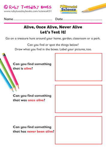 Alive not Alive - PowerPoints KS1 Science - QCA Unit 1A Ourselves National Curriculum Sc2 Life Processes and Living Things. Add to my workbooks 1 Download file pdf Embed in my website or blog Add to Google Classroom. AliveWas aliveNever Alive sorting activity.